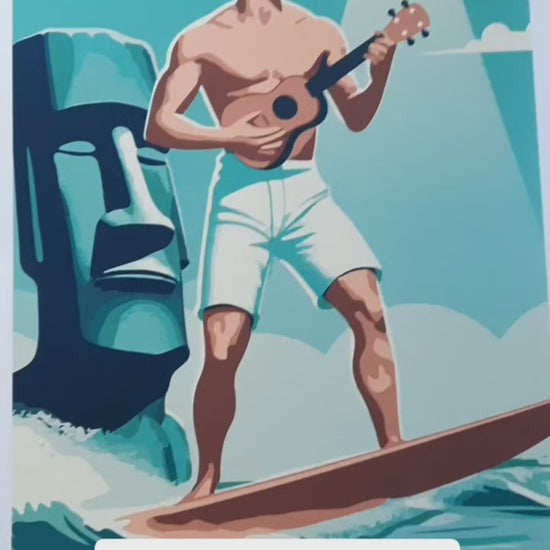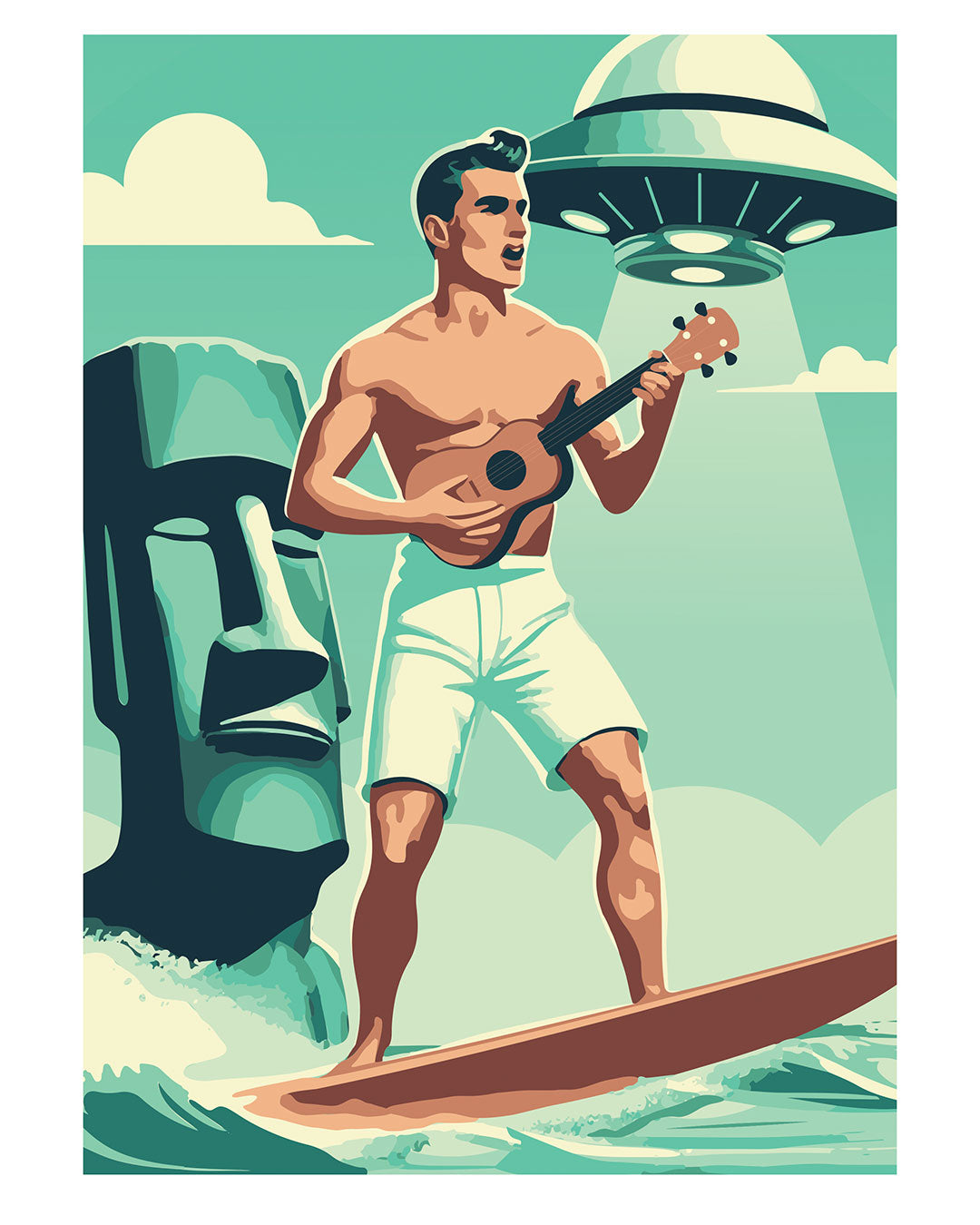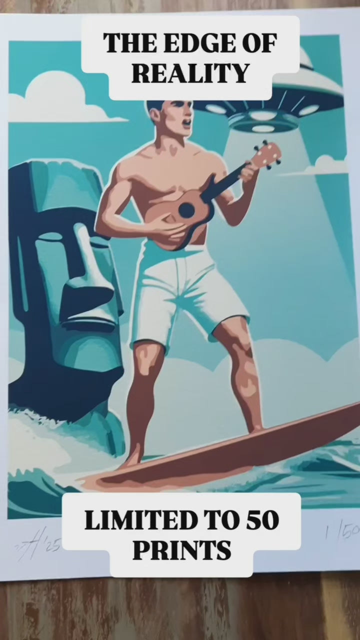 'Edge of Reality' shows the King of Rock and/or Roll, evading a Flying Saucer, while playing a ukulele and riding a surf board! You know your wall NEEDS this!